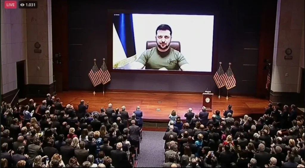 Ένα «πύρινο» λόγο έβγαλε ο πρόεδρος της Ουκρανίας, Βολοντίμιρ Ζελένσκι, μιλώντας το μεσημέρι της Τετάρτης (16/3) στο αμερικανικό Κογκρέσο, όπου απευθυνόμενος στους πολιτικούς της χώρας, ζήτησε αρχικά την περεταίρω στήριξη των ΗΠΑ για την άμεση παύση του πυρός από τους Ρώσους, «κλείνοντας» τον εναέριο χώρο, κάτι που έχει ήδη ζητήσει και σε προηγούμενες ομιλίες του προς το ΝΑΤΟ. Έθεσε όμως και την εναλλακτική λύση της προμήθειας πυραύλων S-300 και αεροπλάνων, ώστε να αντιμετωπιστεί δυναμικά ο πόλεμος που δέχεται η χώρα του από τη Ρωσία. Μίλησε όμως και με βάση ορισμένα ιστορικά γεγονότα που συνέβησαν στις ΗΠΑ, τα οποία μπορούν να βοηθήσουν τους Αμερικανούς να καταλάβουν καλύτερα το τι συμβαίνει αυτή τη στιγμή στην Ουκρανία.