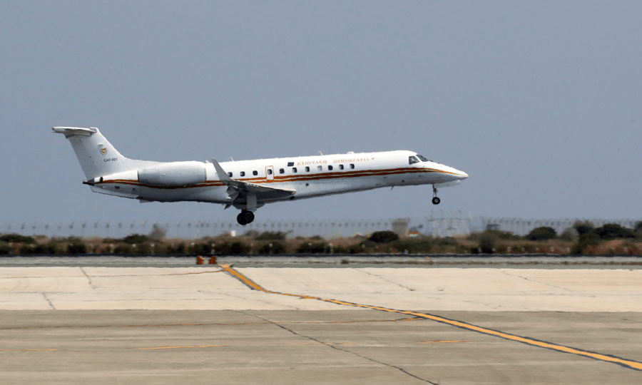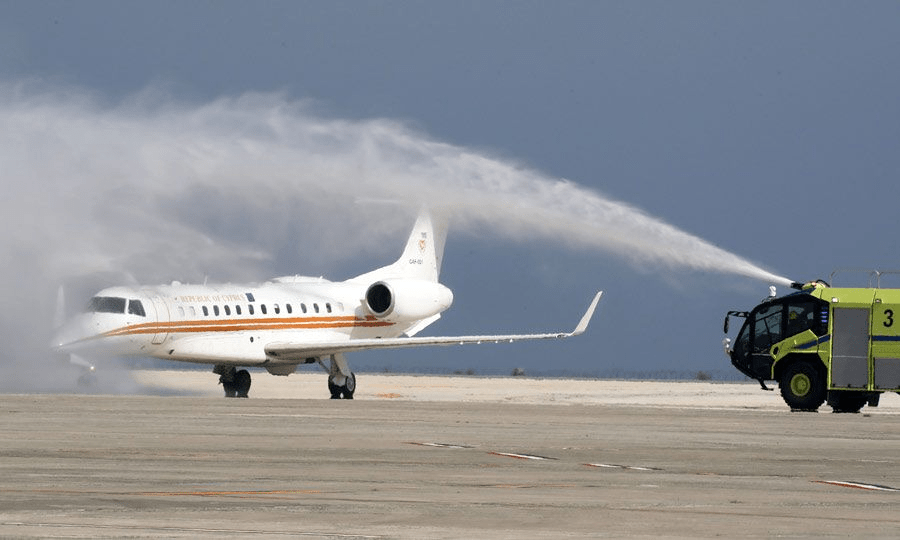 Προσγειώθηκε γύρω στις 2.30 το μεσημέρι στο αεροδρόμιο Λάρνακας το αεροσκάφος το οποίο δώρισε η Ελληνική Δημοκρατία στην Κυπριακή δημοκρατία.