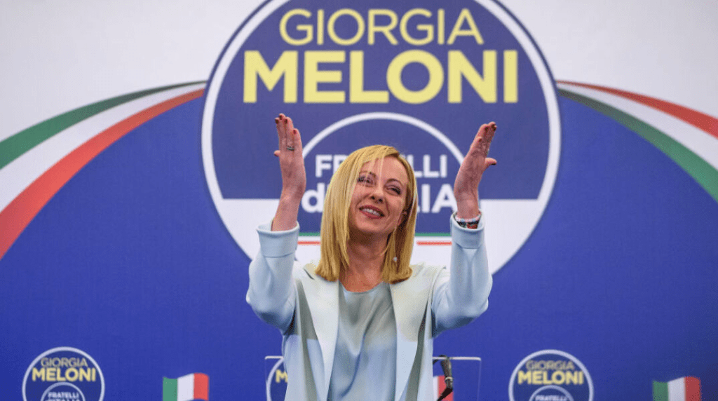 Η ηγέτης των αδελφών Ιταλών, του κόμματος που συνίδρυσε το 2012, το 2018 κέρδισε το 4% των ψηφοφόρων και μέσα σε τέσσερα χρόνια, έφτασε να υπερβαίνει το 26%. Πλέων ετοιμάζεται να ηγηθεί του ιταλικού κυβερνητικού συνασπισμού, μαζί με τα κόμματα του Ματτέο Σαλβίνι και του Σίλβιο Μπερλουσκόνι.