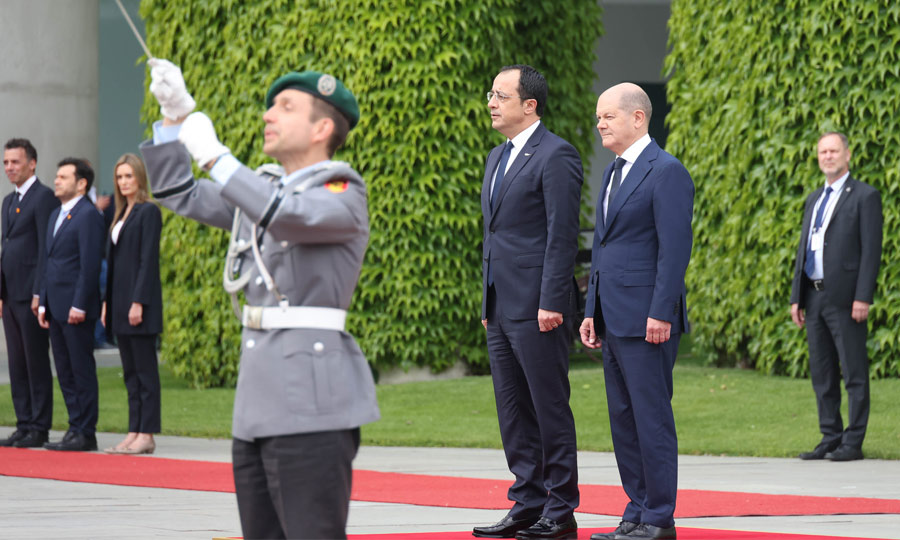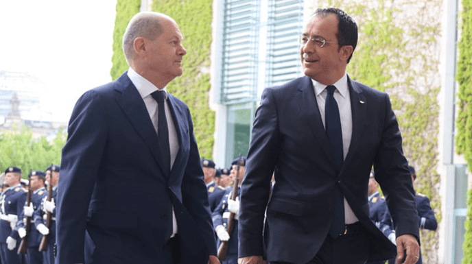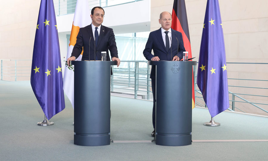 Την ετοιμότητά του να συμβάλει στις προσπάθειες για επίλυση του αδιεξόδου στο κυπριακό εξέφρασε σε δηλώσεις του μετά από συνάντηση που είχε με τον ΠτΔ στο Βερολίνο, ο Γερμανός Καγκελάριος Ολαφ Σολτς.