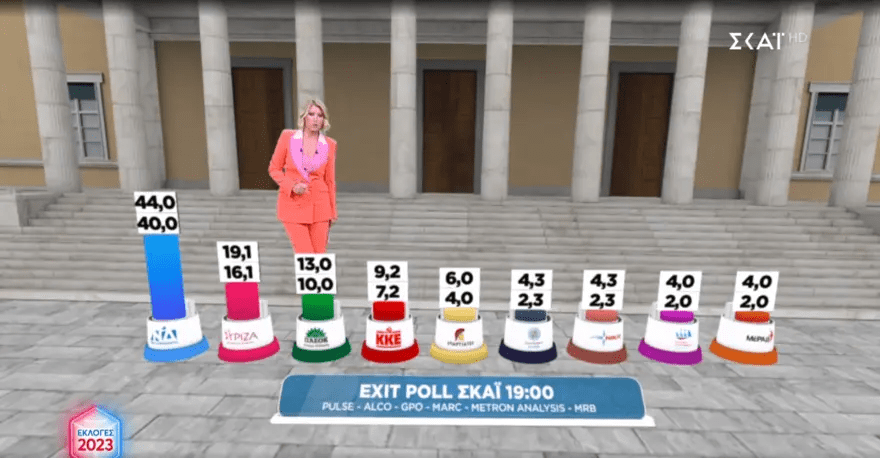 Πιο συγκεκριμένα το κόμμα του Κυριάκου Μητσοτάκη, φαίνεται να αυξάνει τα ποσοστά του, λαμβάνοντας ποσοστό από 40% έως και 44%.