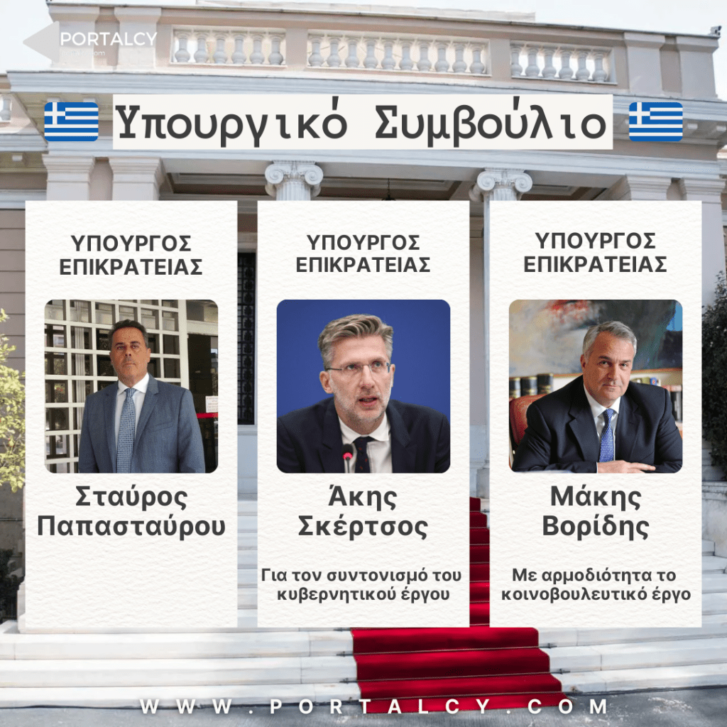 - 3 υπουργούς επικρατείας: Σταύρος Παπασταύρου, Μάκης Βορίδης, Άκης Σκέρτσος