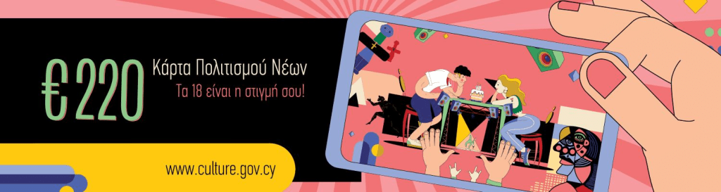 Το Υφυπουργείο Πολιτισμού σε συνεργασία με τον Οργανισμό Νεολαίας Κύπρου και την Τράπεζα Κύπρου, προχωρεί στην έκδοση Κάρτας Πολιτισμού Νέων για νέους και νέες, οι οποίοι έχουν συμπληρώσει το 18ο έτος της ηλικίας τους εντός του 2023 με στόχο να έρθουν σε επαφή με όλες τις μορφές τέχνης, καθώς και τη σύγχρονη καλλιτεχνική δημιουργία.