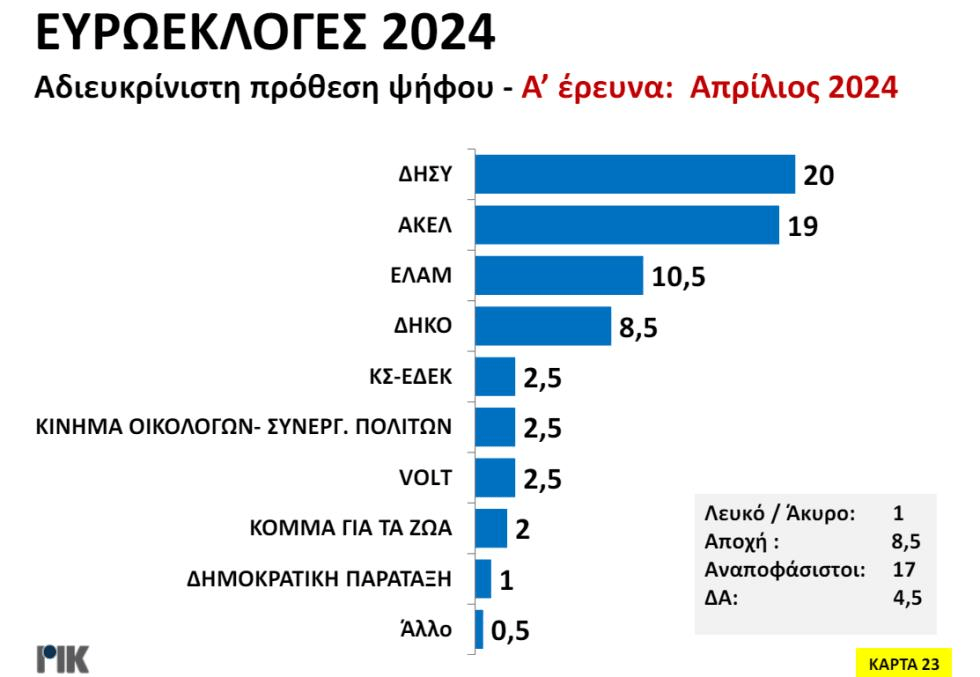 - Στην δημοσκόπηση που παρουσίασε το κρατικό κανάλι ΡΙΚ, η ΕΔΕΚ κυμαίνεται στο 2,5%