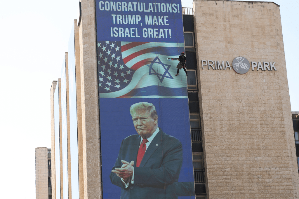 Με γιγαντοαφίσες σε Ιερουσαλήμ και Τελ Αβίβ υποδέχτηκαν το αποτέλεσμα των Αμερικανικών Εκλογών στο Ισραήλ.