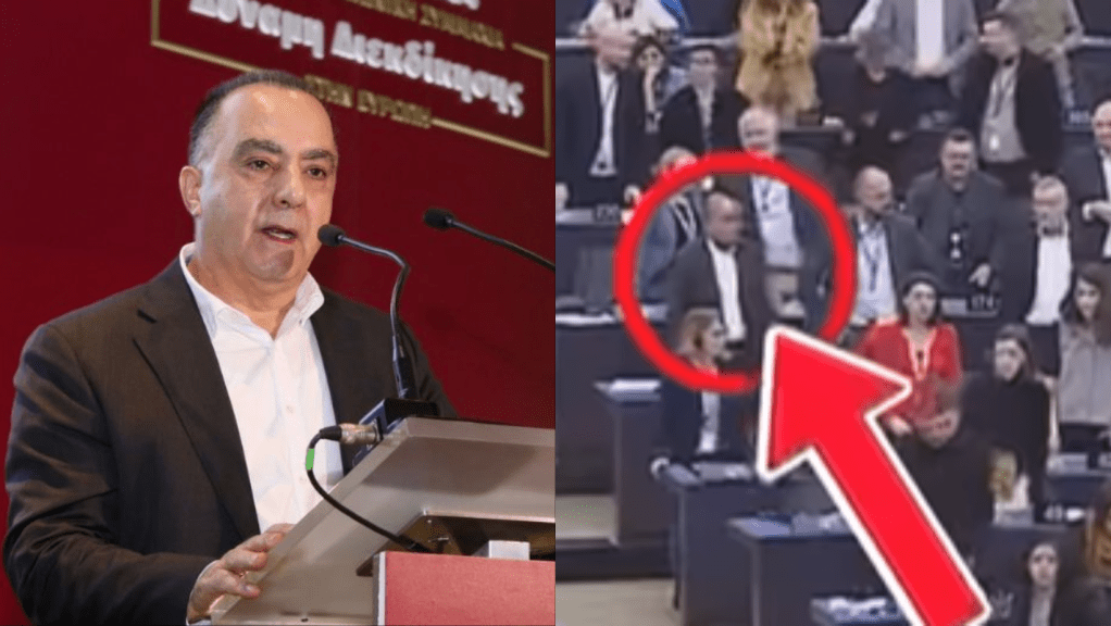 Όρθιος ο ευρωβουλευτής του ΑΚΕΛ, Γιώργος Γεωργίου στην ερώτηση της προέδρου του ευρωκοινοβουλίου κυρίας Ρομπέρτα Μέτσολα αν υπάρχει οποιαδήποτε αντίρρηση σε αυτή την τροπολογία για την παράνομη κατοχή της μισής Κύπρου από την Τουρκία.