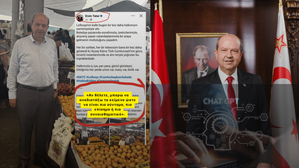 Κατά την ανάρτηση που δημοσίευσε με το τέλος της επίσκεψης του στην αγορά της κατεχόμενης Λευκωσίας, ξέχασε να σβήσει την φράση: «μπορείτε να κάνετε το κείμενο σύντομο, επίσημο ή συναισθηματικό, αν θέλετε», φράση που αφήνει η Τεχνική νοημοσύνη σαν καταληκτικό σχόλιο.